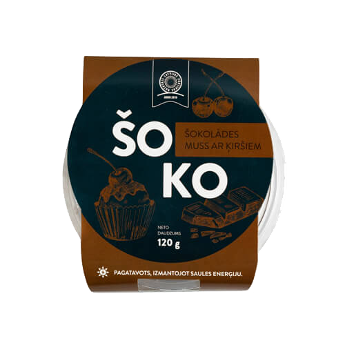 Sastāvdaļas: šokolādes muss 76% (salds krējums (pasterizēts saldais krējums, stabilizētājs (E407)), cukurs, piens, paniņu un augu tauku maisījums (paniņas, augu eļļas (palmu, kokosriekstu), paniņu pulveris, modificēta ciete, emulgatori (E473, E471, sojas lecitīni), biezinātāji (E412, E410)), kakao, vaniļas cukurs, pārtikas želantīns), ķiršu ievārījums ( ķirši, cukurs, biezinātājs (E418), glikozes – fruktozes sīrups, skābuma regulētājs (E330), konservants (E202)).