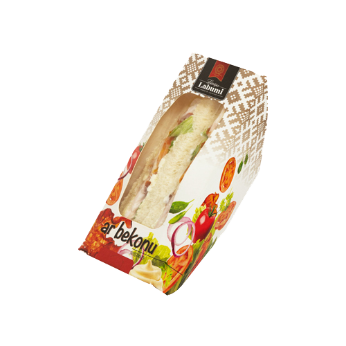 Sastāvdaļas: maize 47% (kviešu milti, ūdens, rapšu eļļa, cukurs,sāls, raugs, uzlabotājs (kviešu milti), emulgatori (nātrija stearoil-2-laktāts, stabilizētājs: kalcija karbonāti), antioksidants:askorbīnskābe), bekons 17% (cūkas krūtiņa, ūdens, sāls, konservants: nātrija nitrīts, garšvielas, stabilizētāji (difosfāti un trifosfāti), biezinātājs: karagināns, antioksidants: nātrija eritorbāts, garšas pastiprinātājs:mononātrija glutamāts, dekstroze, ķiploki), majonēze (rapšu eļļa, ūdens, cukurs, vājpiena pulveris, olu pulveris (satur maltodekstrīnu), olu masa, pārveidota ciete, sāls, skābuma regulētāji (etiķskābe, pienskābe), biezinātāji (guāra sveķi, ksantāna sveķi), konservanti (kālija sorbāts, nātrija benzoāts), sinepju sēklu aromatizētājs, krāsviela: beta-karotīns), tomāti, salātu lapas